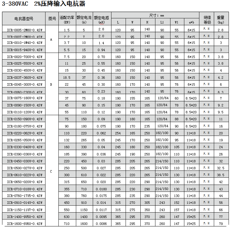 電抗器產品選型手冊