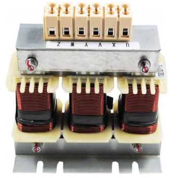 ? ? ?安裝在變頻器輸出端,用于限制變頻器與電機連接電纜的容性充電電流,鈍化變頻器輸出的PWM波的電壓上升率。電機電纜長度超過一定值時,建議在變頻器與電機之間插入一個電機電抗器用于補償在長導線時的電容再充電電流。此長度決定于變頻器的額定值以及電機電纜的類型。